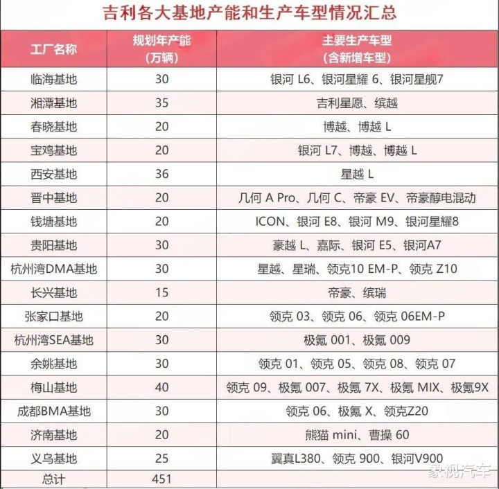 其中,吉利大本营浙江最多,其他的分布在湖南、贵阳、四川、西安、河北、山西、山东等地,实际规划产能约450万台。